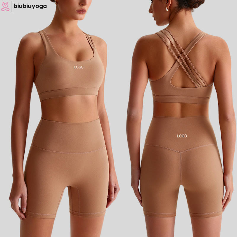 Women's Sexy Sports Bra & Breathable Leggings Combo Open-Back Workout Yoga Running Outfit with Shorts for Gym Outdoor Activities