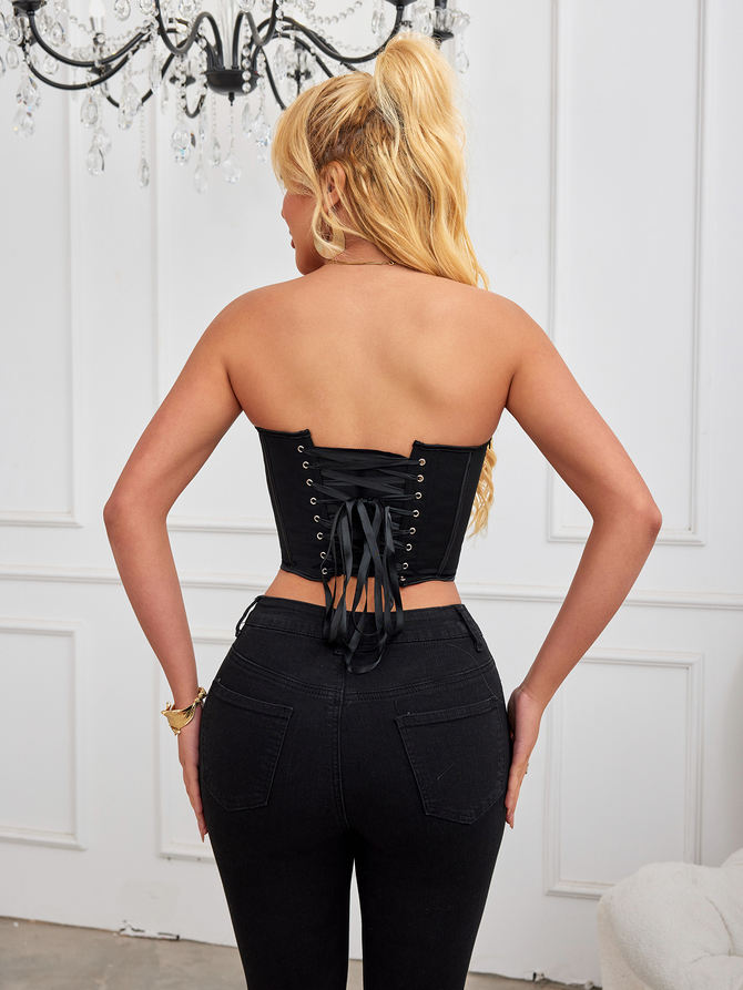 Women's Sexy Sweetheart Neck Crop Tube Tops Strapless Boned Bustier Cami Wedding Corset Top Haut Corset Bustier