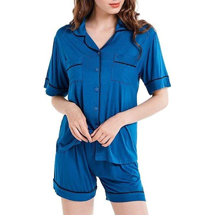 Pigiama con bottone a manica corta Set ly714 _ 4 indumenti da notte in morbido Spandex con Logo personalizzato elastico in vita ODM/OEM MOQ 2 pz