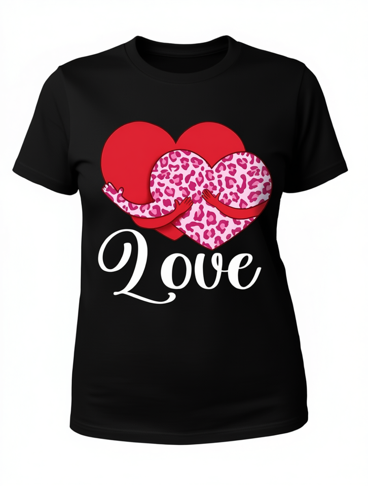 Women's Short Sleeve Round Neck T-Shirt Pink Leopard Heart Print Casual Regular Fit 100% Cotton Machine Washable