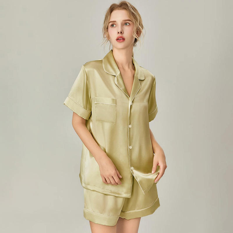 Women's Short Sleeve Satin Pajamas Set Breathable Ice Silk Nightwear for Spring Summer ODM Plus Size 5XL XS Solid Pattern