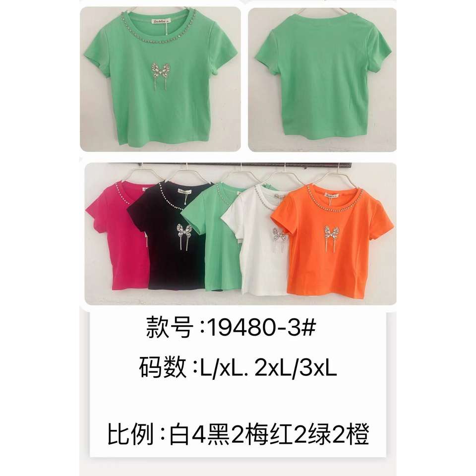 T-shirt da donna a maniche corte con collo a fiocco traspirante e decorazioni con strass di diamanti di vari colori all'ingrosso