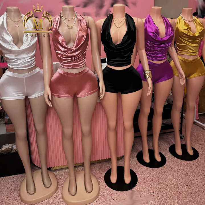 Women's Shorts Set Stain Backless Bandage Top and Shorts Matching 2 Piece Set Sexy Vintage Two Piece Set Trendy Women Clothing