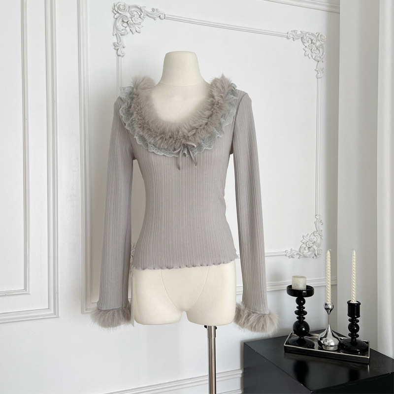 Cardigan Aderente da Donna in Maglia con Maniche Pelose e Inserti di Pelo Lungo, Cinturini Elastici e Design Corto ed Elegante