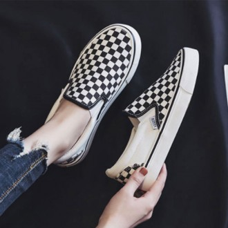 Women's Slip-On Low Heel Fashion Sneakers ZG Check Fitness Walking Shoes