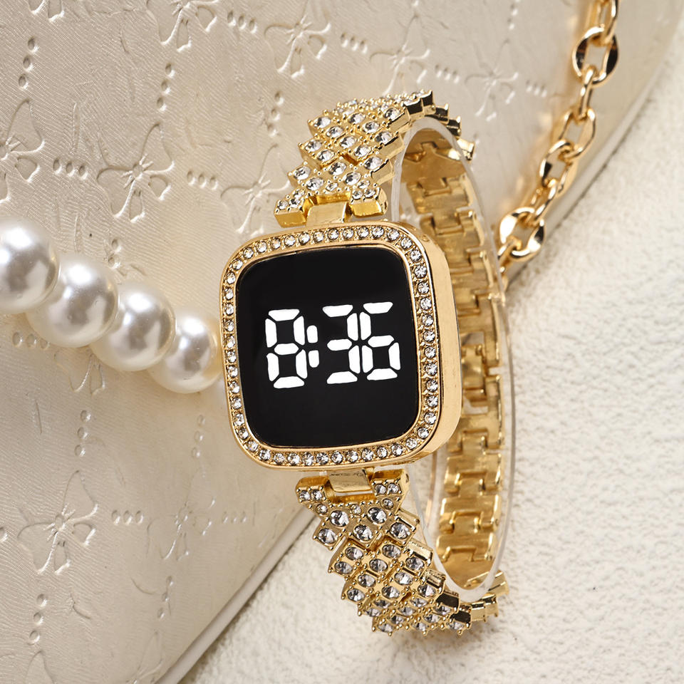 Orologio da Donna Piccolo Stile Elegante con Diamanti, LED, Cinturino in Acrilico, Touch, Casual, alla Moda, Elettronico, Quadrato