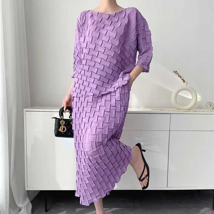 Women's Soft Elastic Sets Unique Design High Quality Pleated Dresses Elegance Miyaki Turkish Dress Suits Plus Size Women's Sets