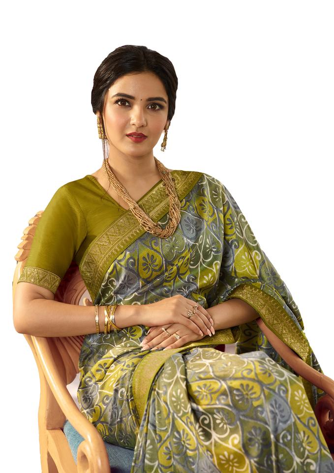 Women's Soft Silk Georgette Saree with Unstitched Blouse Printed Big Thick Border for Weddings Parties Indian Pakistani Clothing