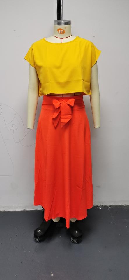 Gonna da donna A vita alta tinta unita alla moda cintura sottile con fiocco A pieghe lunga lunga gonna Gypsy rosso arancio giallo