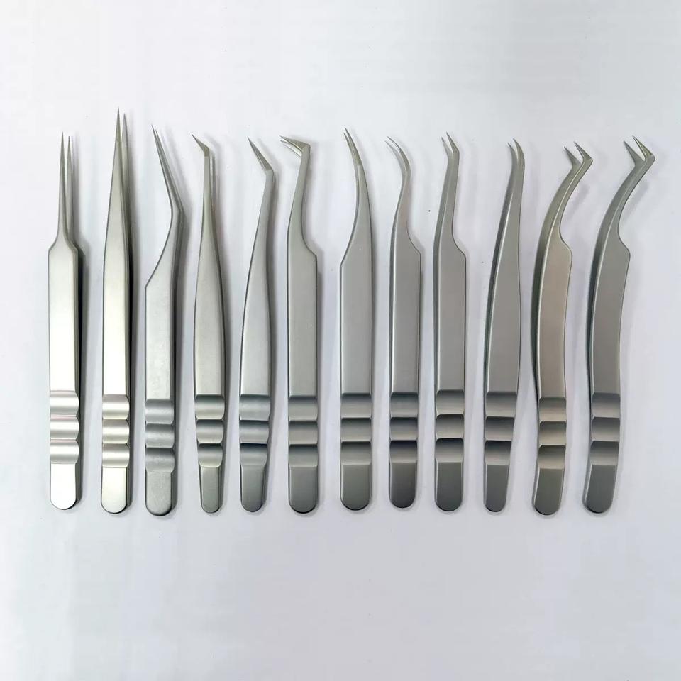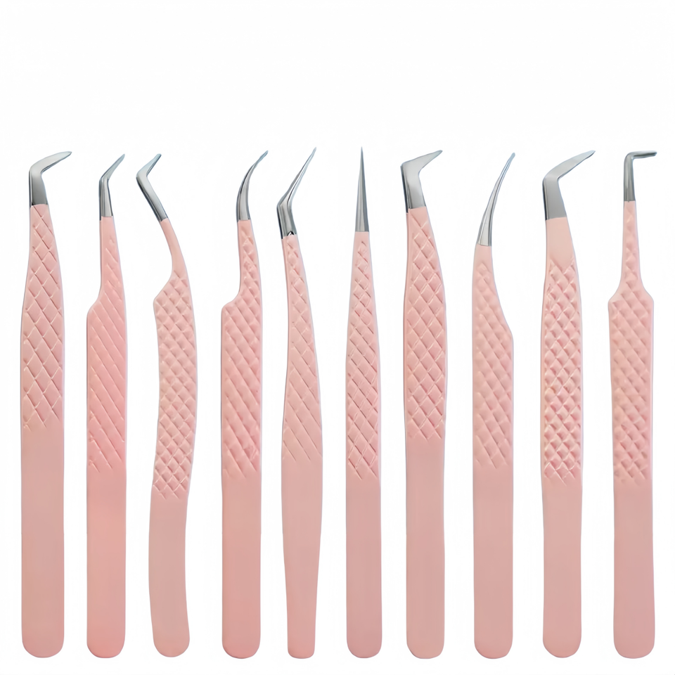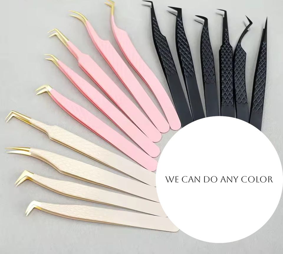 Pinzette da donna in tinta unita rosa russo di alta qualità per il trucco Logo personalizzato Stefan in acciaio punta punta Volume etichetta privata