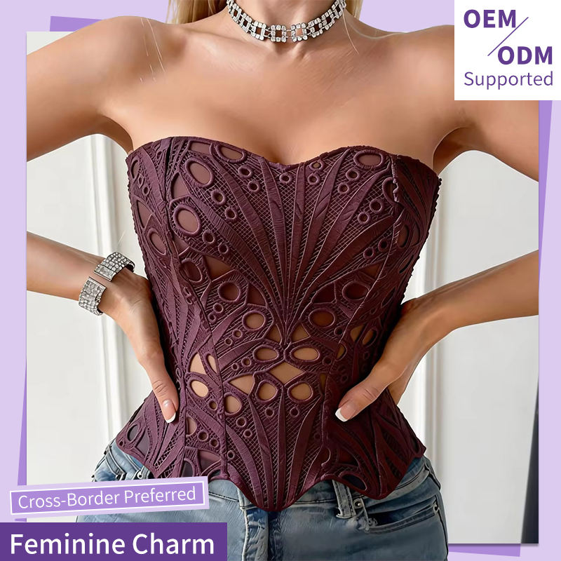 Top Modellante da Donna in Spandex Traspirante, Corsetto Modellante con Bordo in Pizzo, Tessuto Pettinato, Livello di Controllo Forte, Vendita all'Ingrosso
