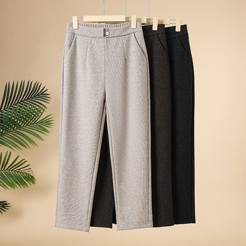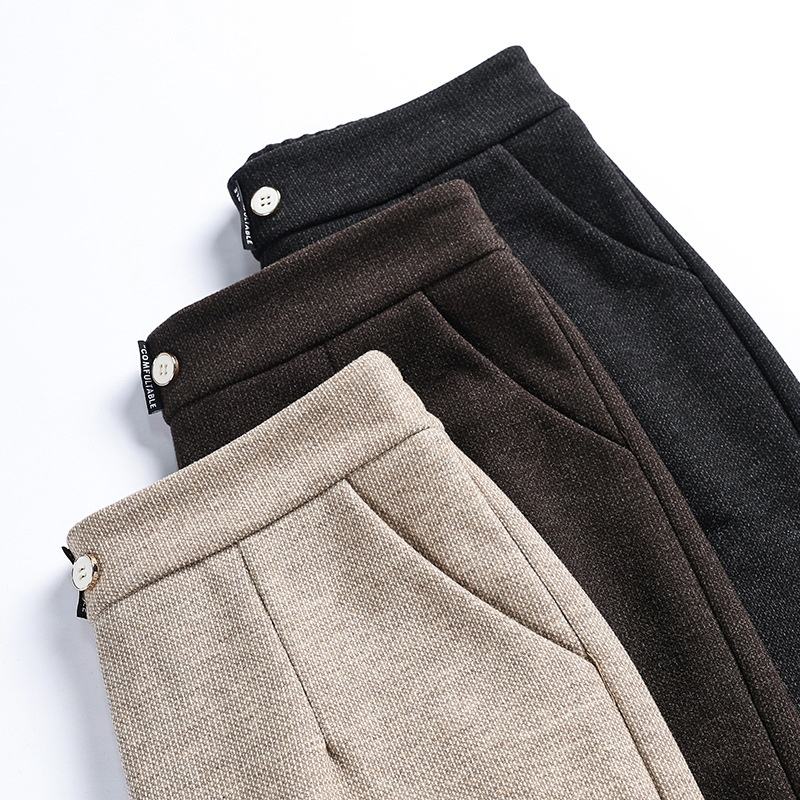 Pantaloni Casual primavera autunno donna vita alta elasticizzati a gamba dritta abiti in lana per lavoro traspirante a vita media pantaloni per donna