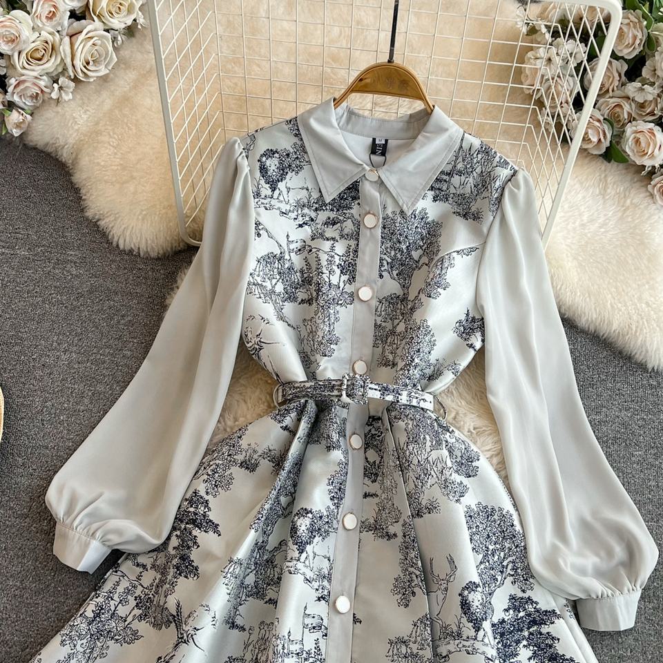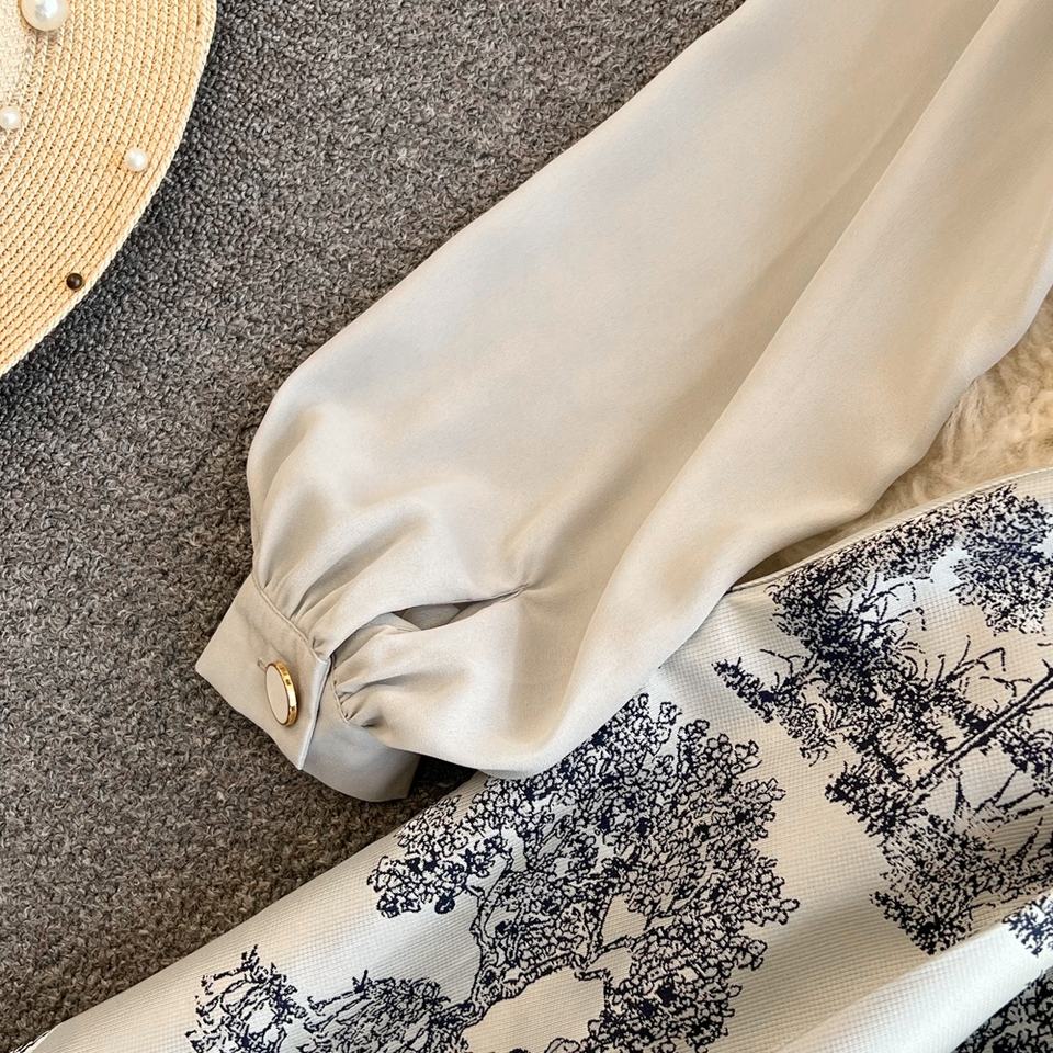 Camicia Casual stampata monopetto da donna primavera autunno moda manica a bolle con risvolto a trapezio abiti Casual