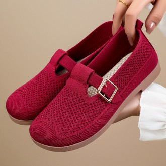 Women's Spring New Casual Sneakers Breathable Slip-On Fitness Walking Shoes with Buckle for Mom and Seniors