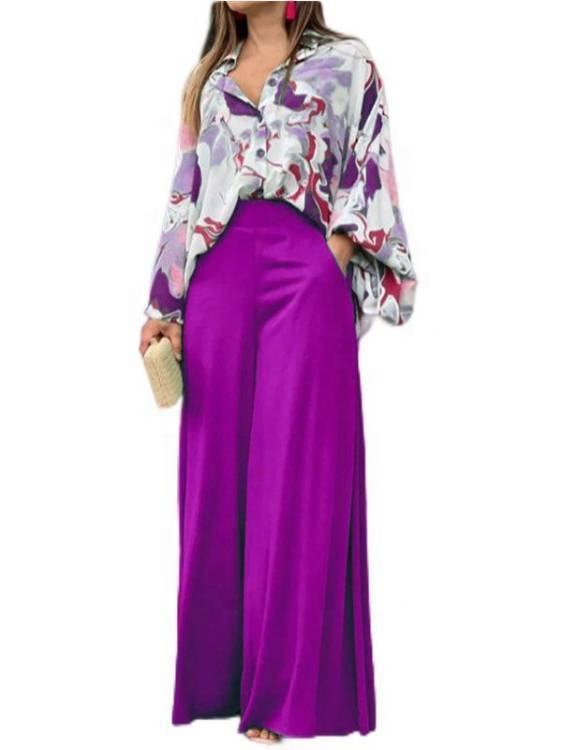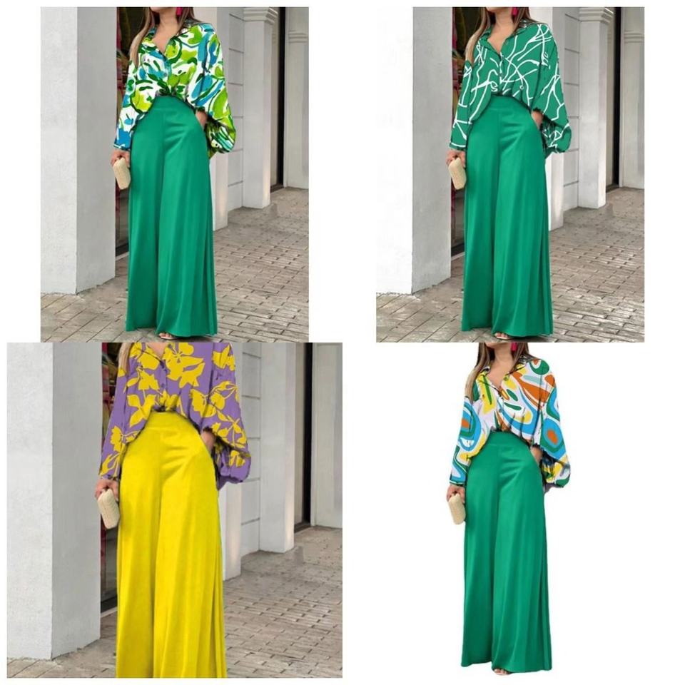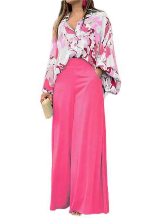 Pantaloni primaverili da donna completi Casual a due pezzi camicia a maniche lunghe a vita alta pantaloni pantaloni alla moda