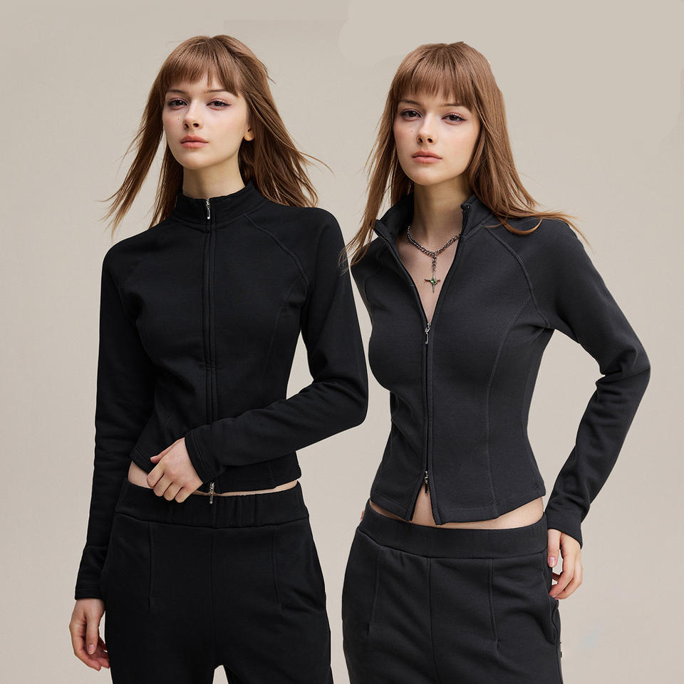 Women's Stand-Up Collar Zipper Tight-Fitting Thickened Long-Sleeve Short-Style Fashionable Sports Jacket