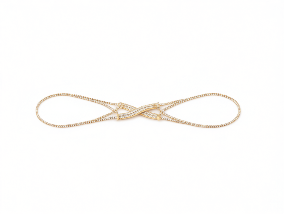 Catena Elastica da Donna in Lega d'Acciaio con Strass, Placcata in Oro, Elegante per Uso Quotidiano