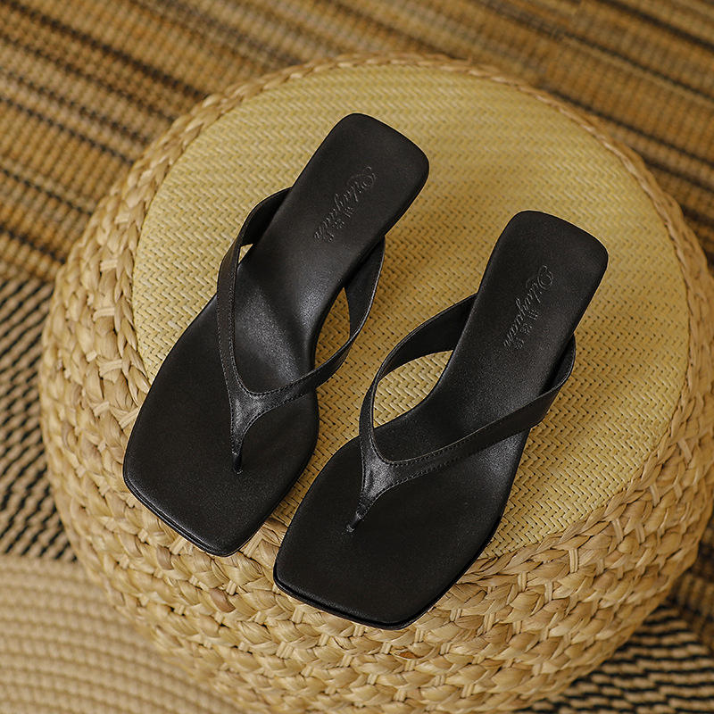 Women's Strappy Kitten Heels Flip Flops Square Open Toe Low Heels Fashion Party Dress Thong Heeled Sandals