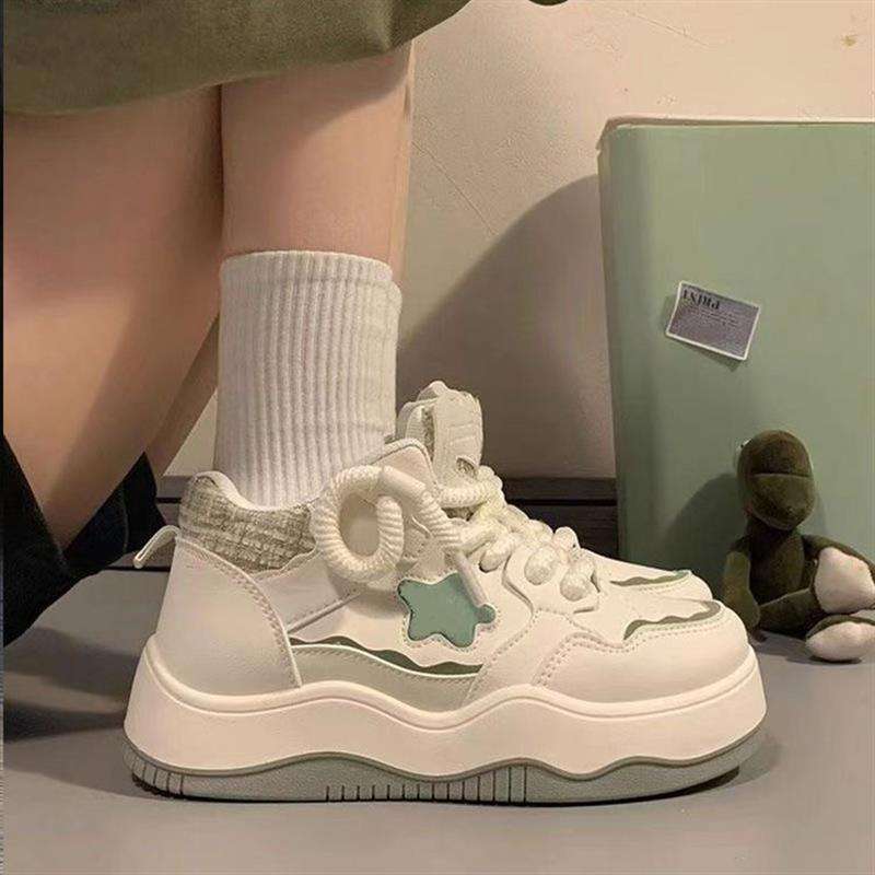 Women's Streetwear Platform Sneakers 2000s Retro Style Beige Green Colorblock with Star Pattern