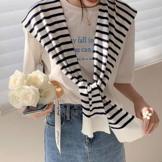 Women's Striped Fake Cardigan 1 Piece Shoulder Shawl