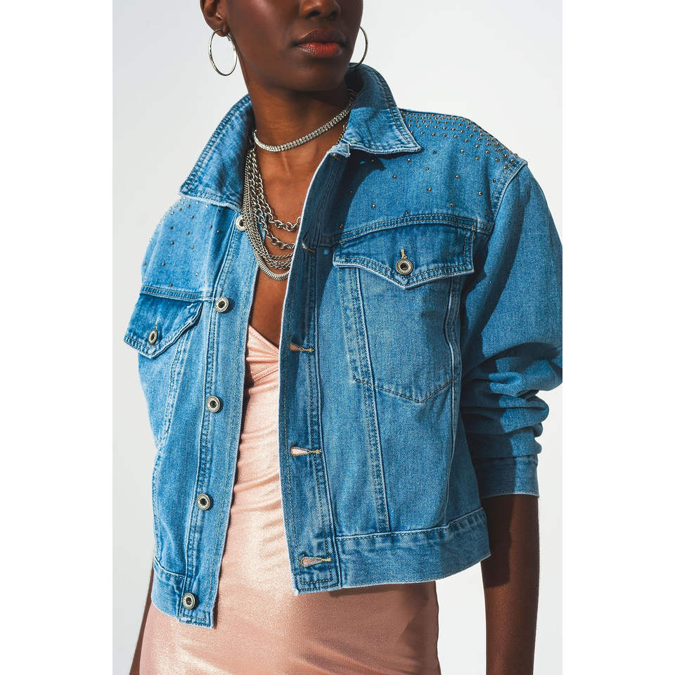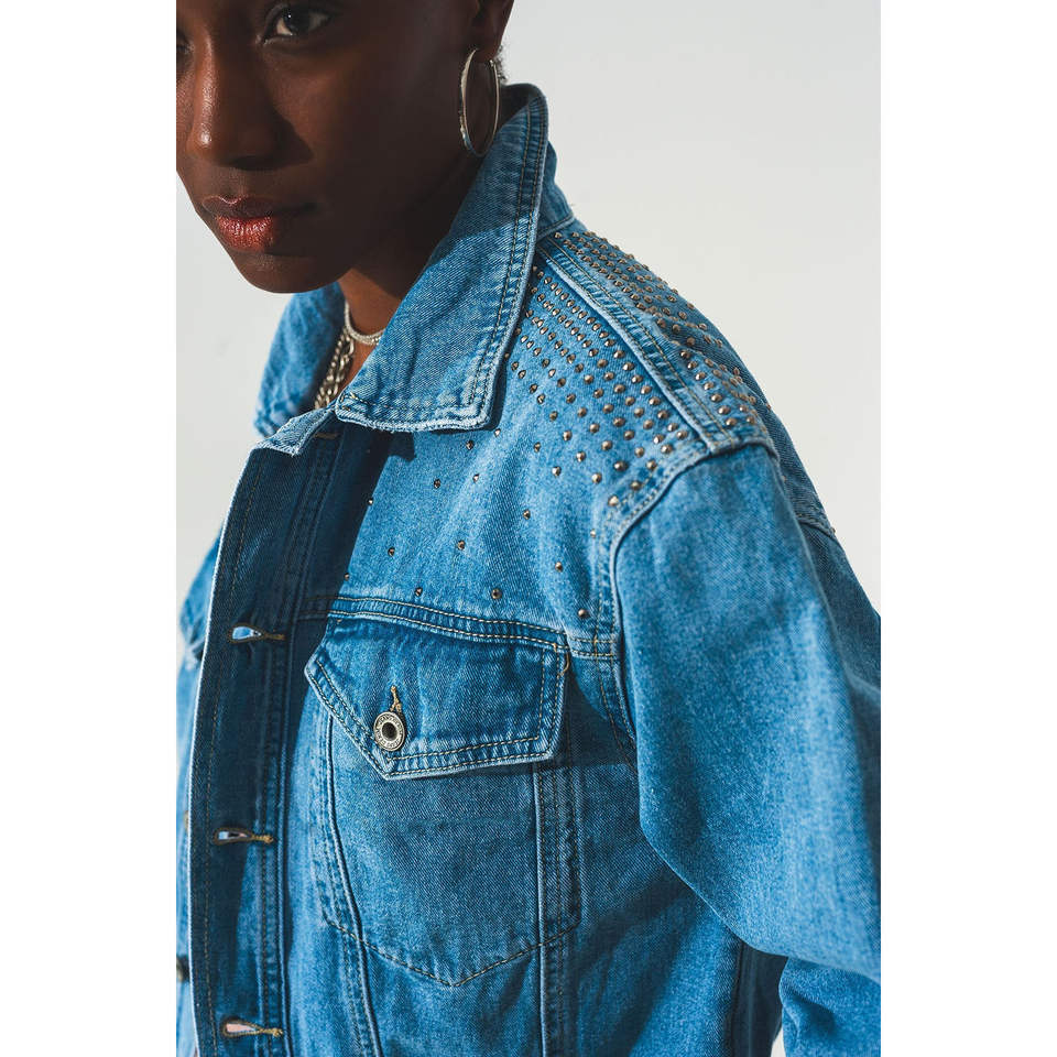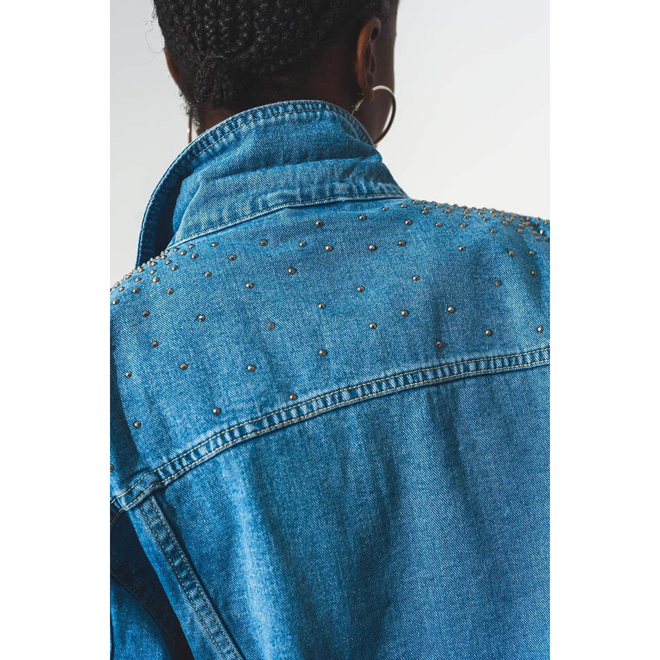 Giacca e Cappotto in Denim Blu con Borchie per Donna, Design Elegante per Donne Attente alla Moda