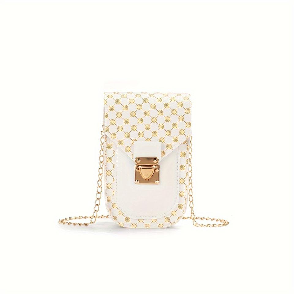 Women's Stylish Faux Leather Crossbody Bag Geometric Pattern Phone Wallet Bag with Flap Chain Luxury Design Compatible iPhone