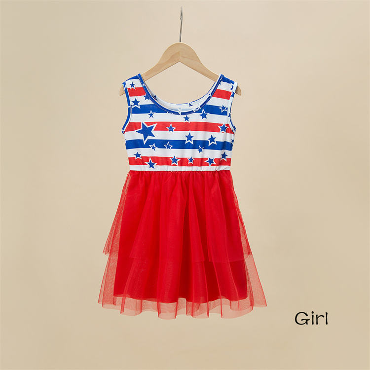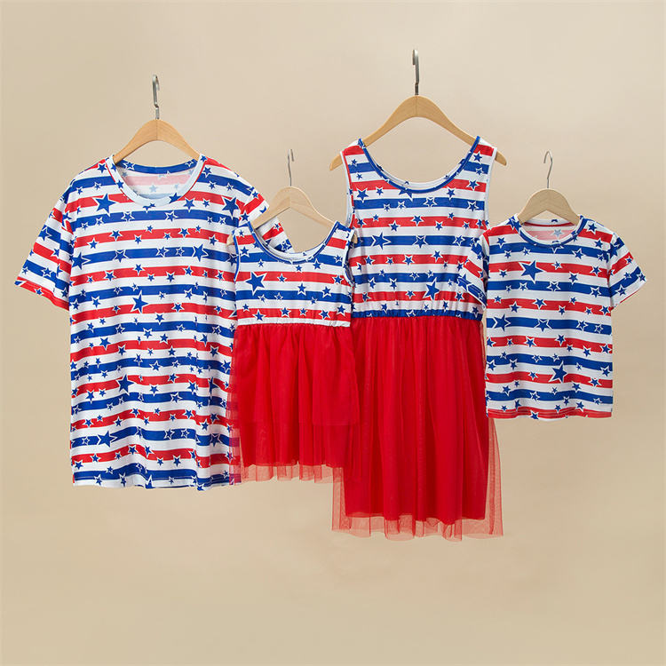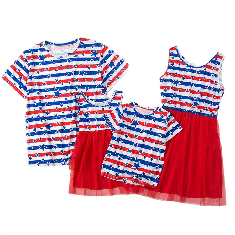 Women's Stylish Independent Day Flag Dress Spring Summer Outfit for Mom & Daughter for Family Photos with Baby Boys & Girls