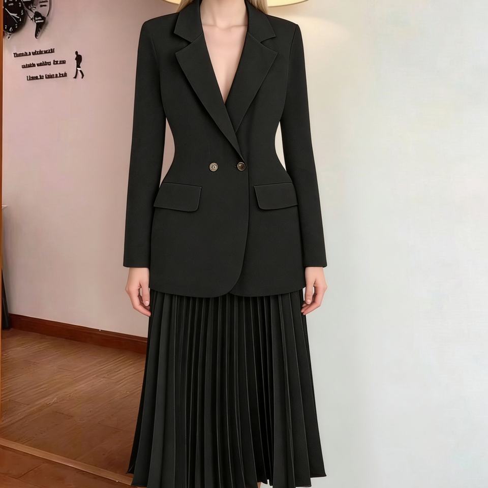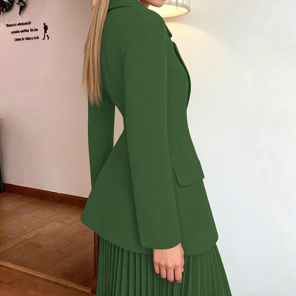 Women's Suit Blazer & Pleated Skirt Casual 2-Piece Set (Belt Not Included) Sehe Fashion