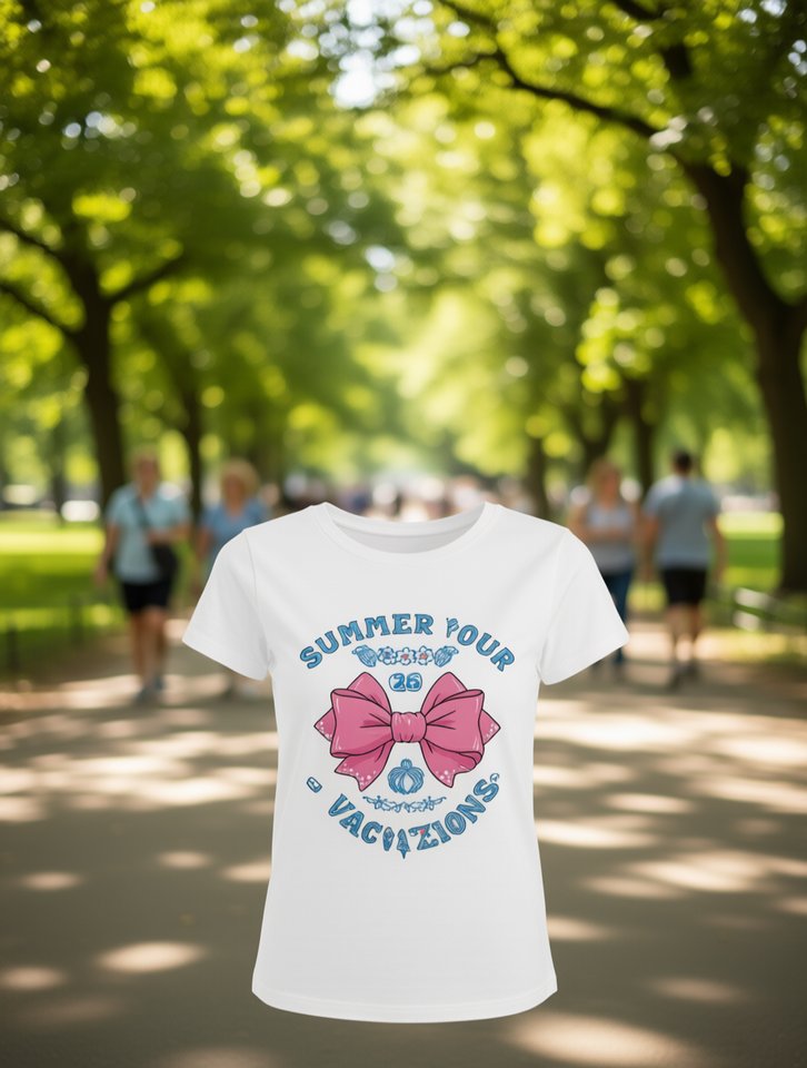Women's Summer Bow Letter T-Shirt Round Neck Short Sleeve Breathable Machine Washable Casual Sweet Style Jersey Fabric