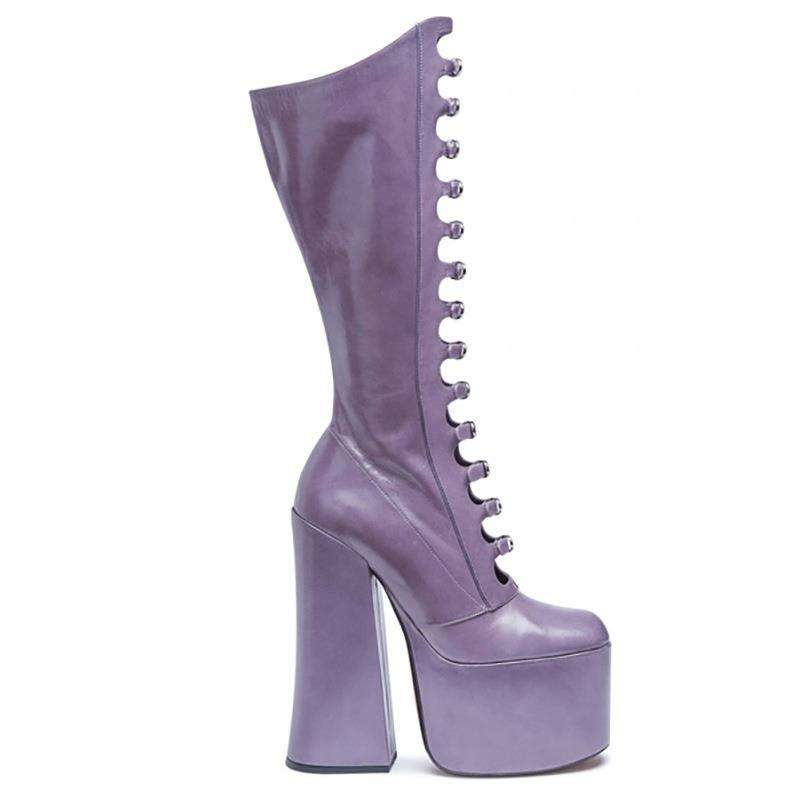 Stivali alti da donna con taglio estivo al ginocchio fibbie con plateau tacchi alti scarpe con cerniera laterale da donna stivaletti lunghi da 15cm di altezza