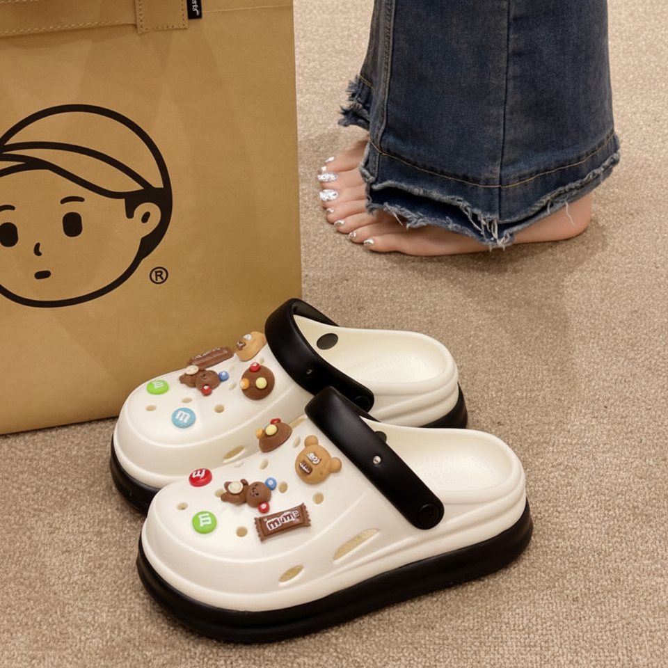 Women's Summer Cute Flat Sandals A77 Outerwear Hole Pool Shoes Daily Slippers and Water Shoes