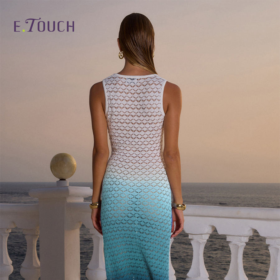 Women's Summer Knit Lace-Up Dress - Trendy Gradient Blue Casual Dress