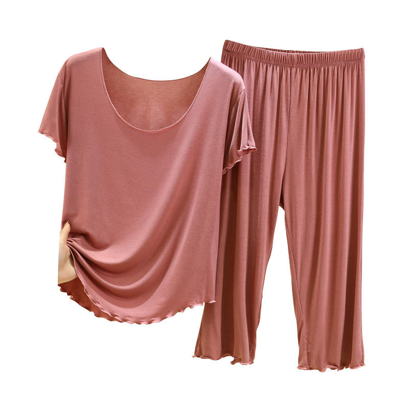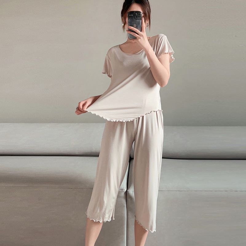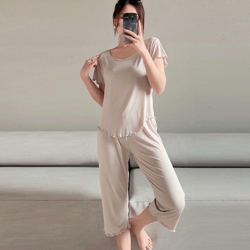 Pigiama modale da donna stile dolce Capri in raso pantaloni con chiusura a bottoni Logo anteriore abbigliamento per la casa sostenibile per Outdoor