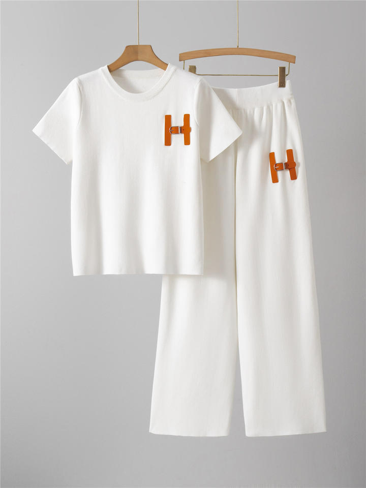 Women's Summer New Short-Sleeved Casual Sports Blazer Trendy Two-Piece Lazy Fashion Suit Wide-Leg Long Pants Cross-Border