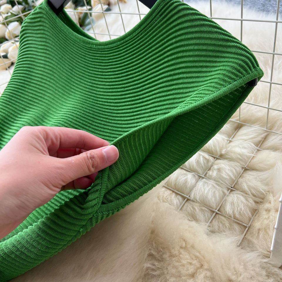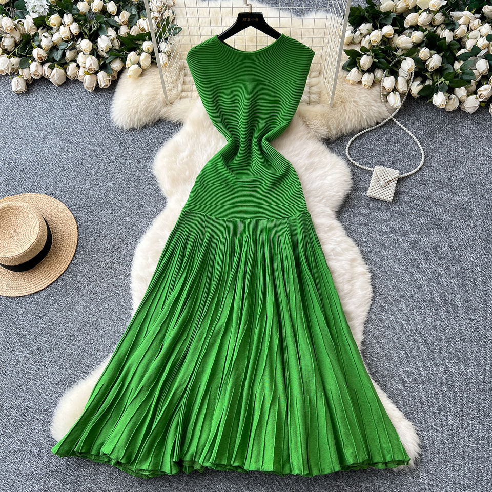 Abito Estivo da Donna in Maglia Senza Maniche Premium con Pieghe e Patchwork Aderente