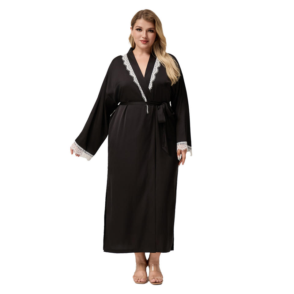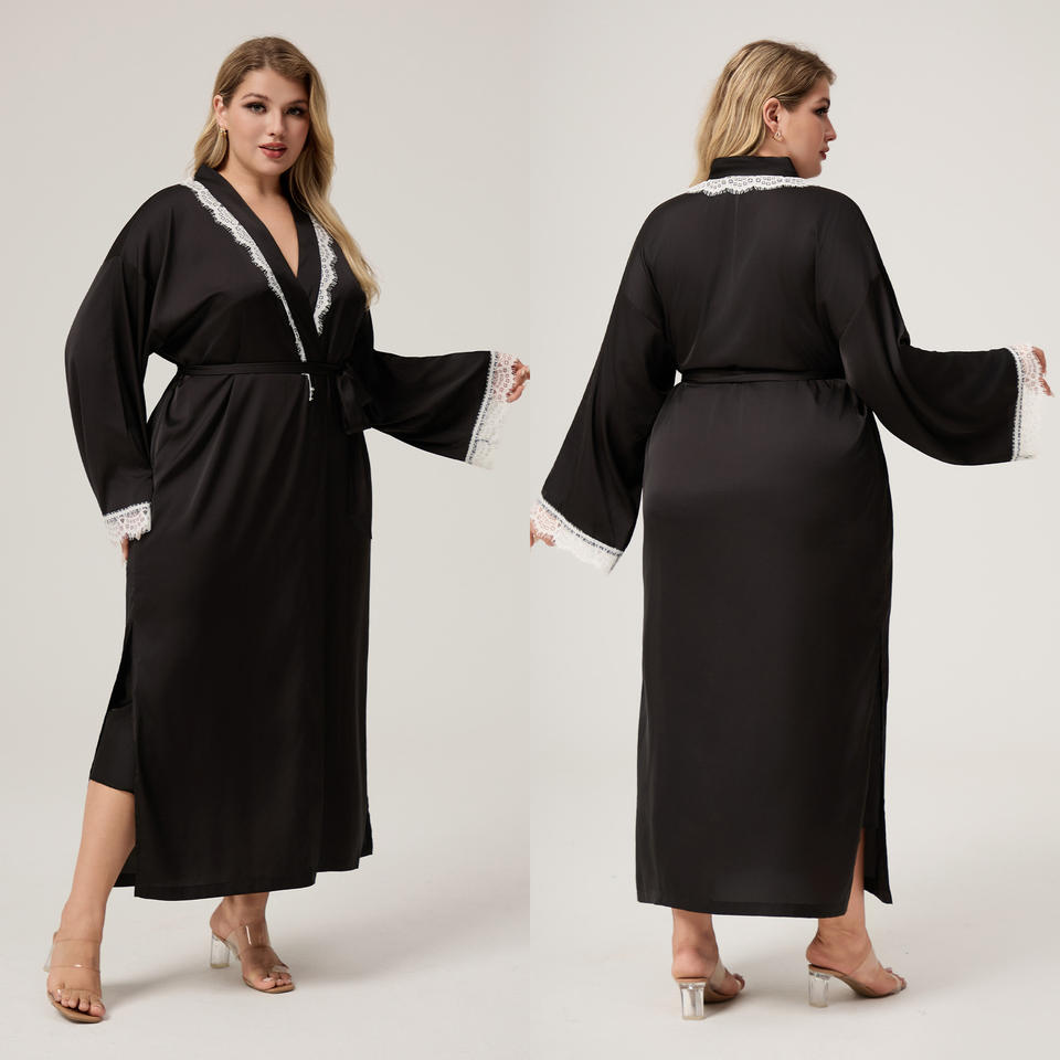 Women's Summer Silk Satin Chiffon Nightgown Long Sleeve Lace Pajamas in Plus Size Home Nightgown