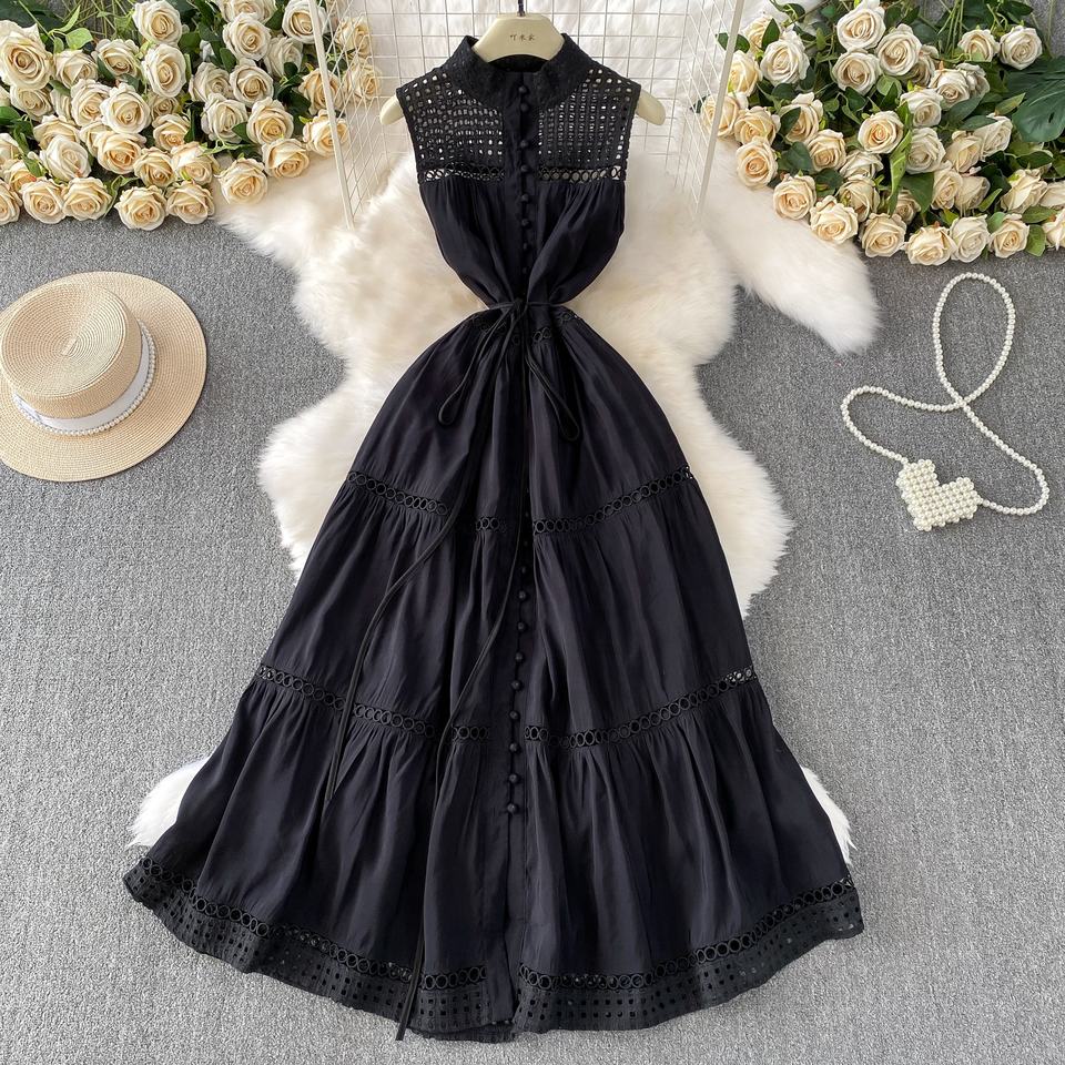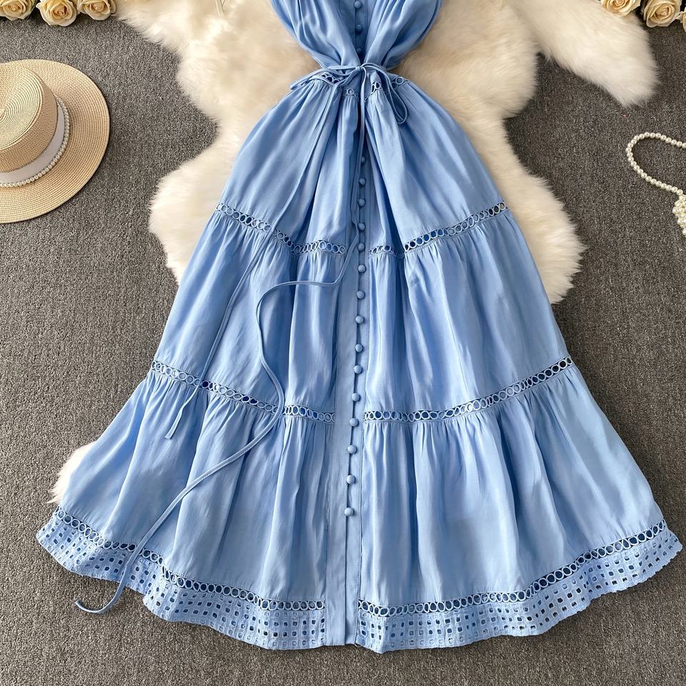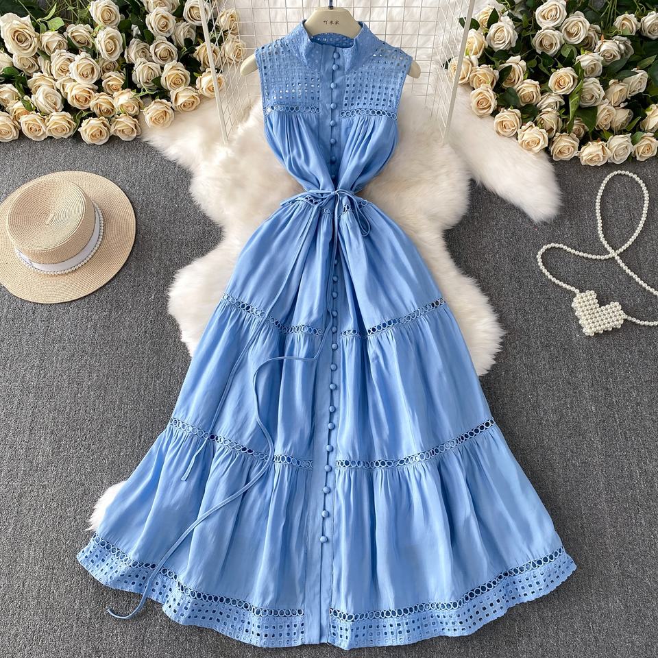Abiti senza maniche con colletto intagliato blu vento monopetto francese monopetto da donna