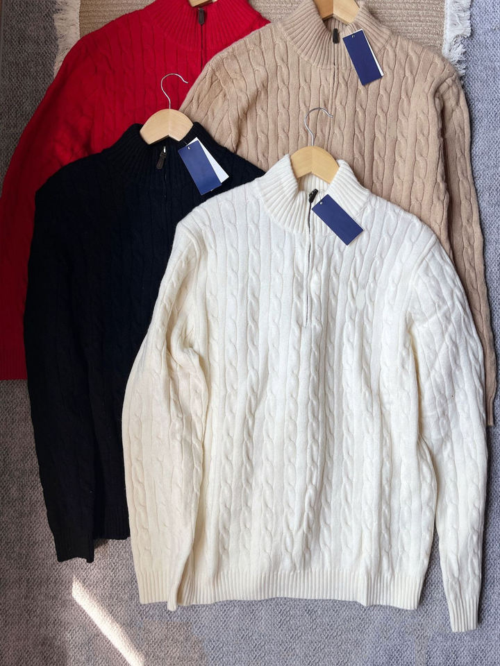 Women's Thickened Pullover Zipper Sweater Plain Winter Clothes Knitted for Autumn