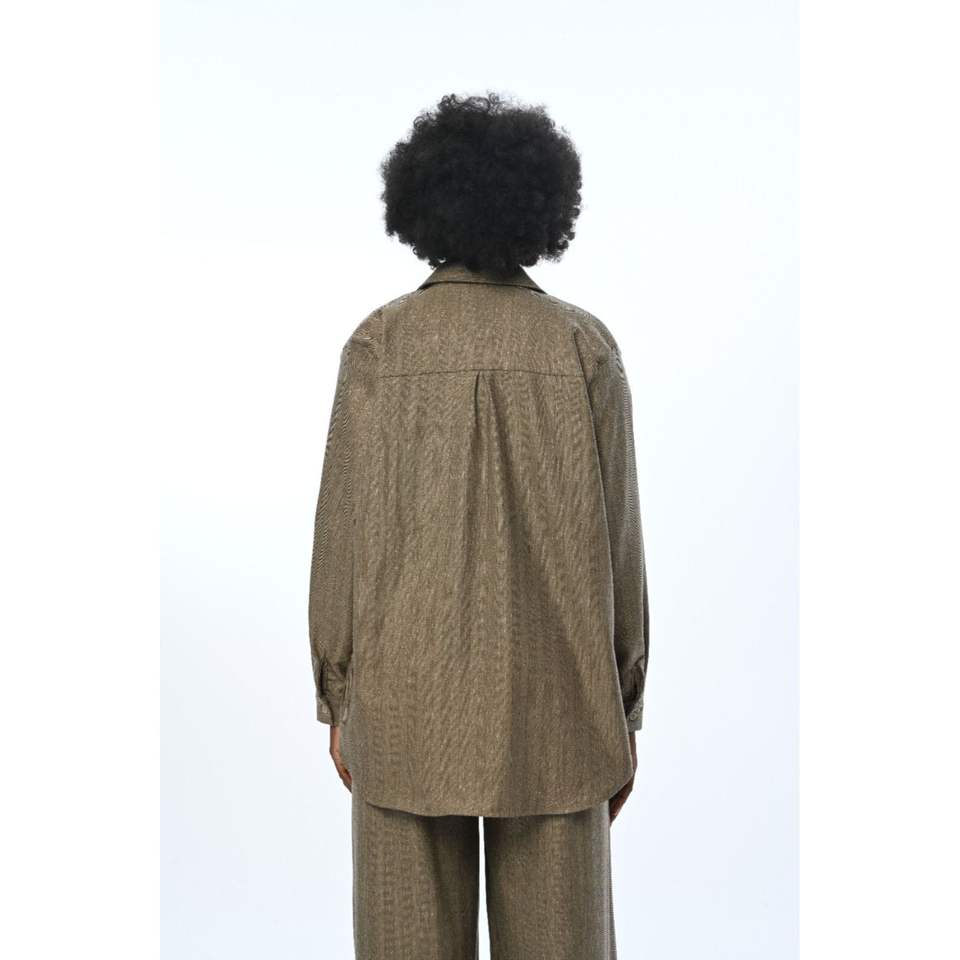 Women's Thin Striped Glitter Oversize Blouse Plus Size Glitter Shirt