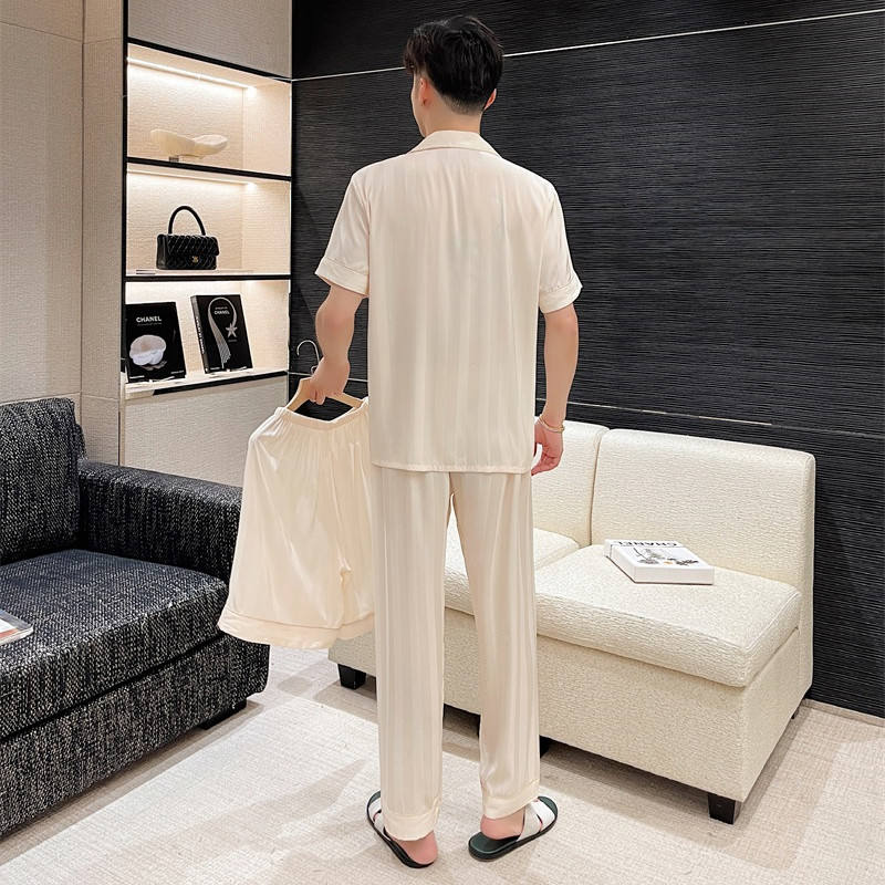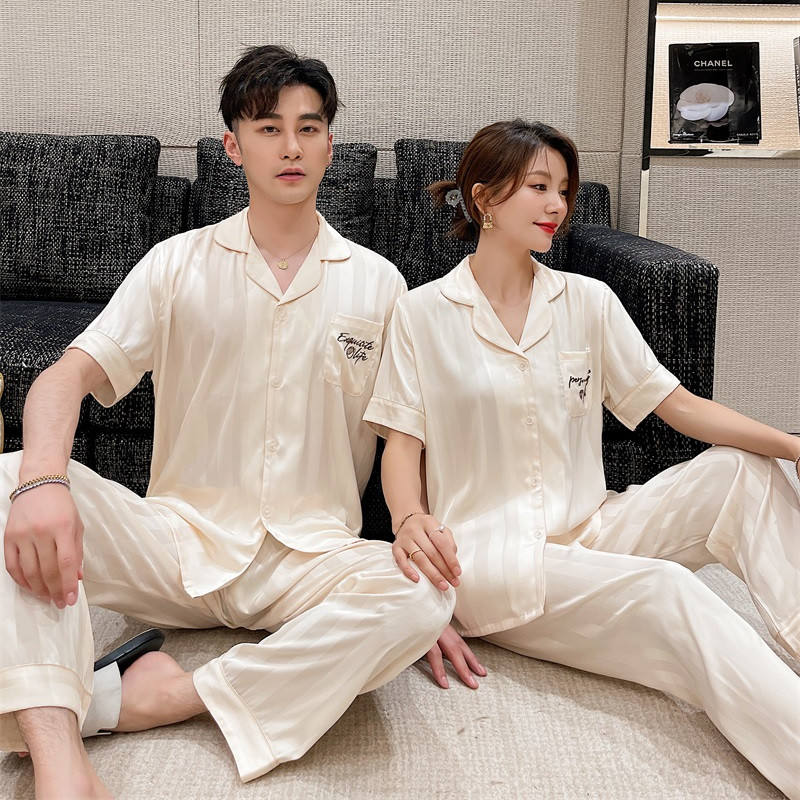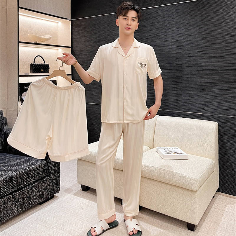 Pigiama da donna a tre pezzi in seta ghiaccio estiva, pigiama da uomo a maniche corte e pantaloni, completi da notte sottili, pigiami per coppie, abbigliamento da casa taglie forti