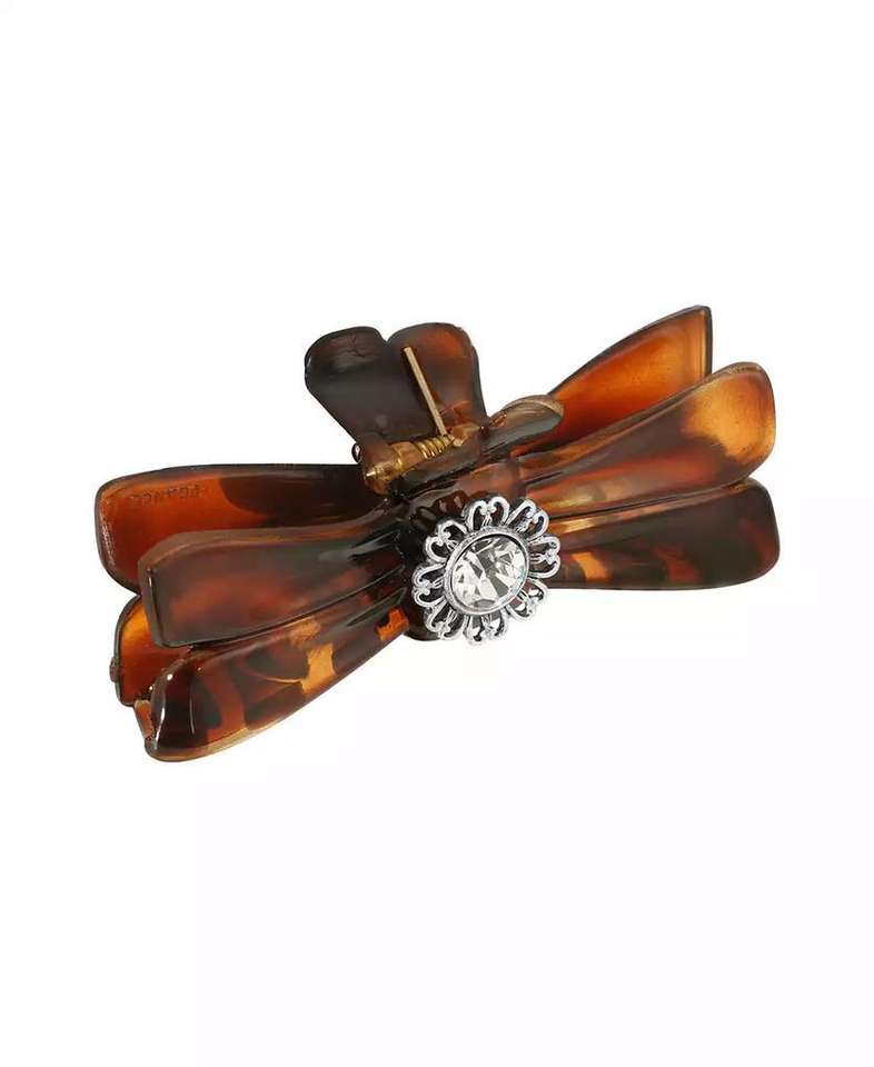 Women's Tortoise with Silver-Tone Filigree and Crystal Accent Small Claw Clip | 2028
