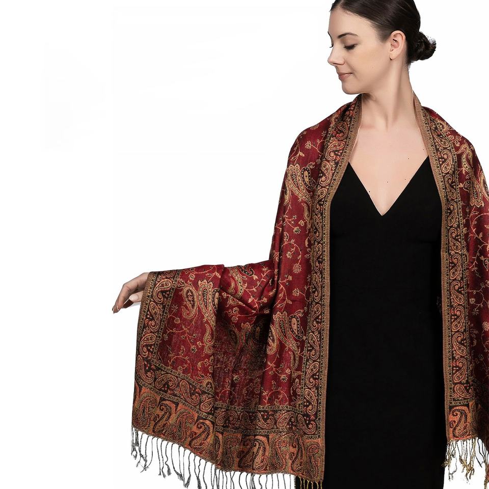 Women's Traditional Autumn Winter Scarf Retro Ethnic Style Tassel Shawl Middle Eastern Paisley Jacquard Silk for Air Travel