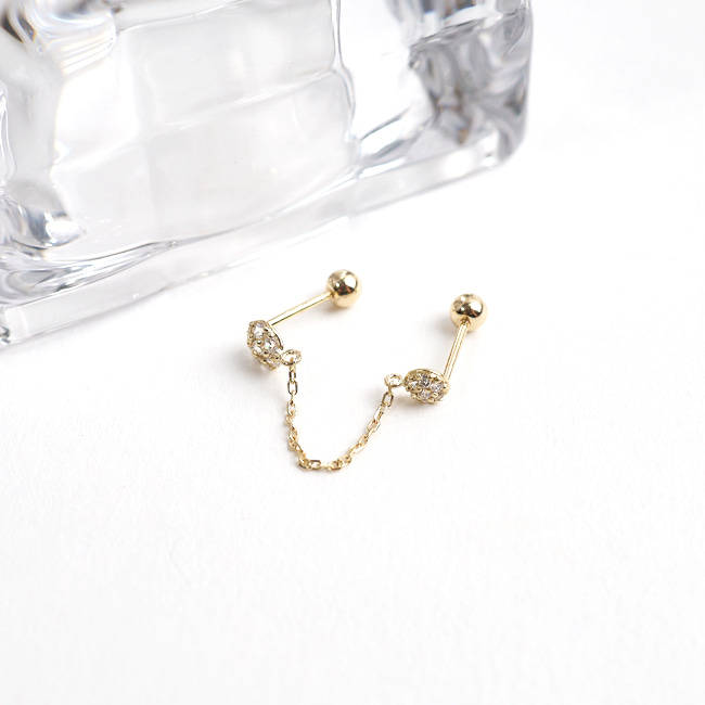 Women's Trendy 14k Gold Fine Stud Party Earrings Chain Half Circle Zirconia Cubic Piercing Jewelry Gifts Wholesale K-Jewelry