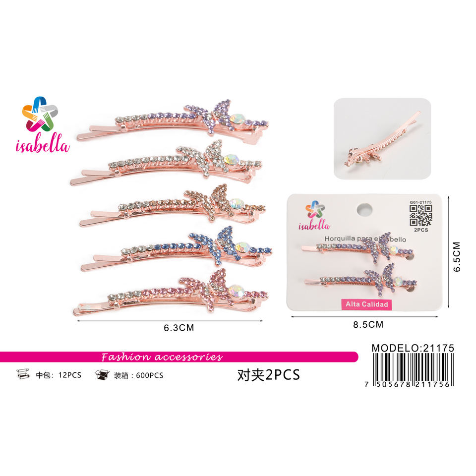 Women's Trendy 2-Piece Hair Clip Set G01-21175 Stylish Elegant Decorative Colorful Metal Hair Clips Cute Jewelry Accessory