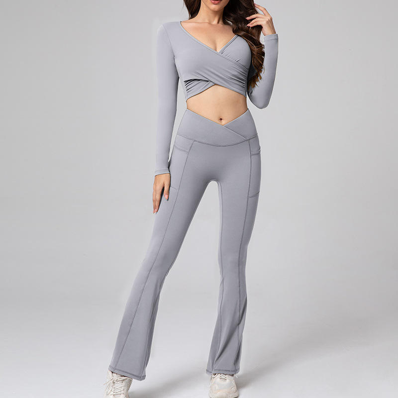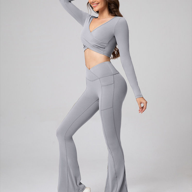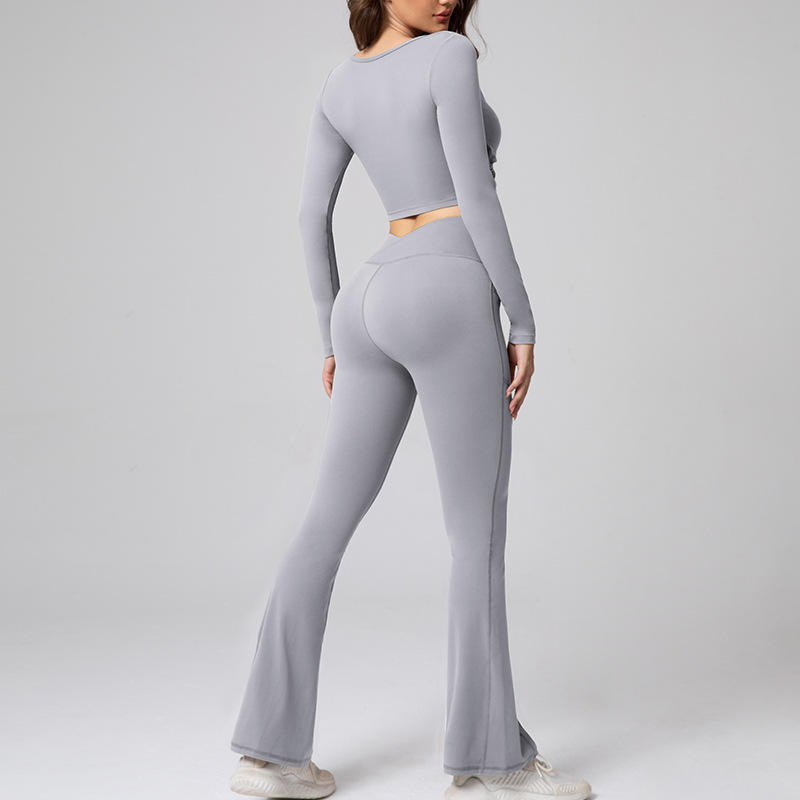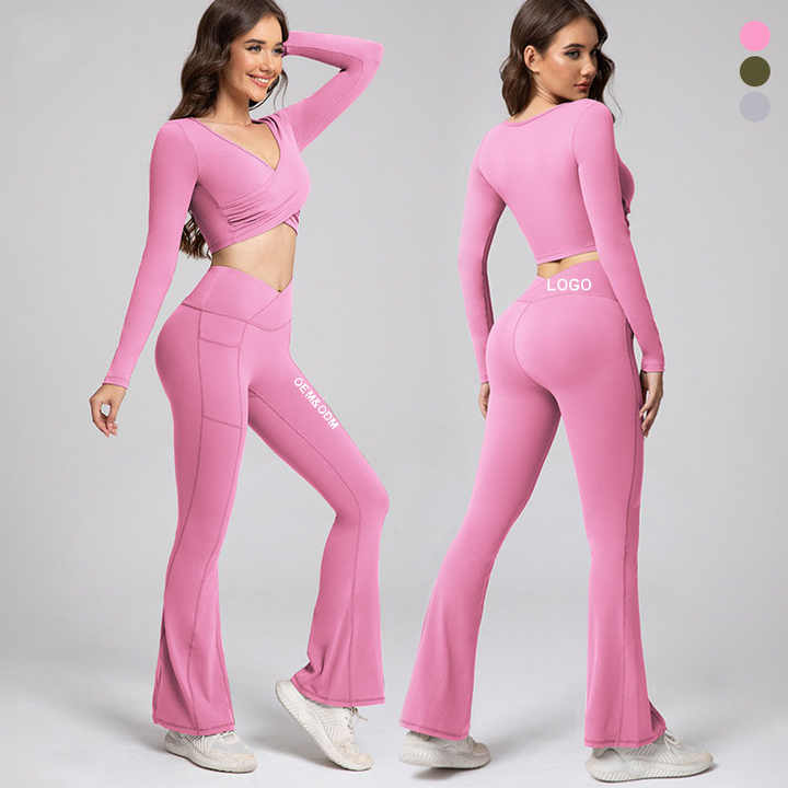 Women's Trendy Baby Pink XXL Outdoor Yoga Suit Pants Long Sleeve Breathable Flare Leggings Elastic Waist Solid Plus Size