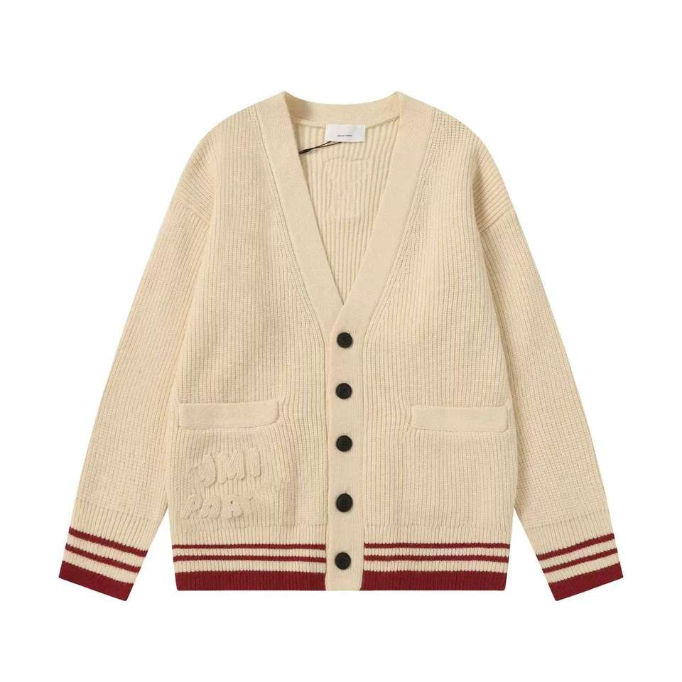 Women's Trendy Brand Winter Cardigan Sweater AM Letter Pattern V-Neck with Streetwear Striped Cuffs Hem Button Decoration