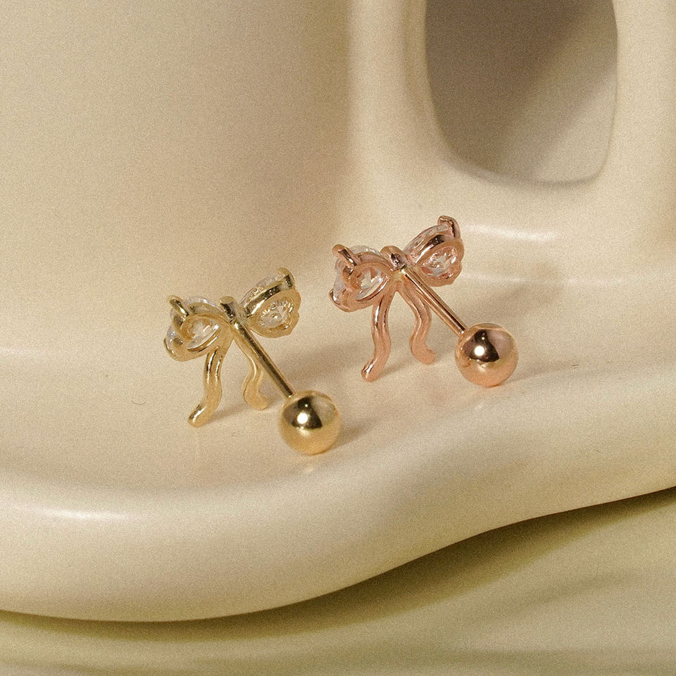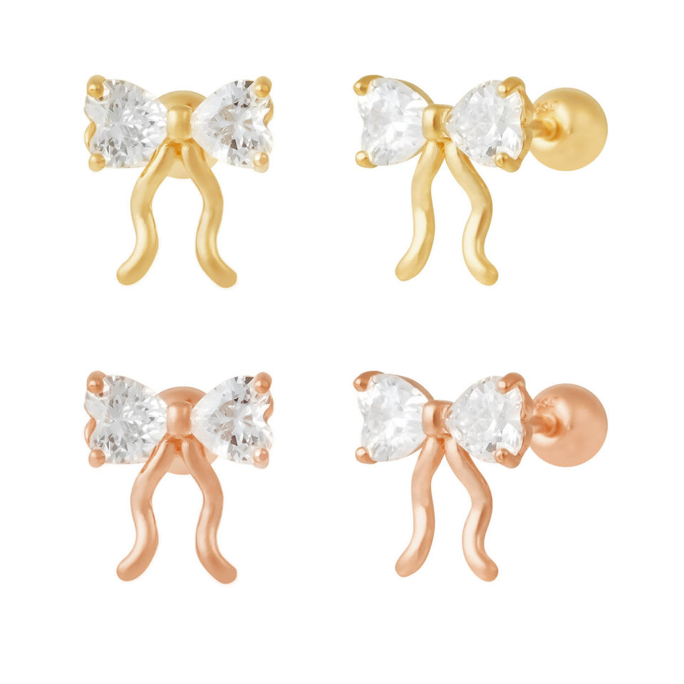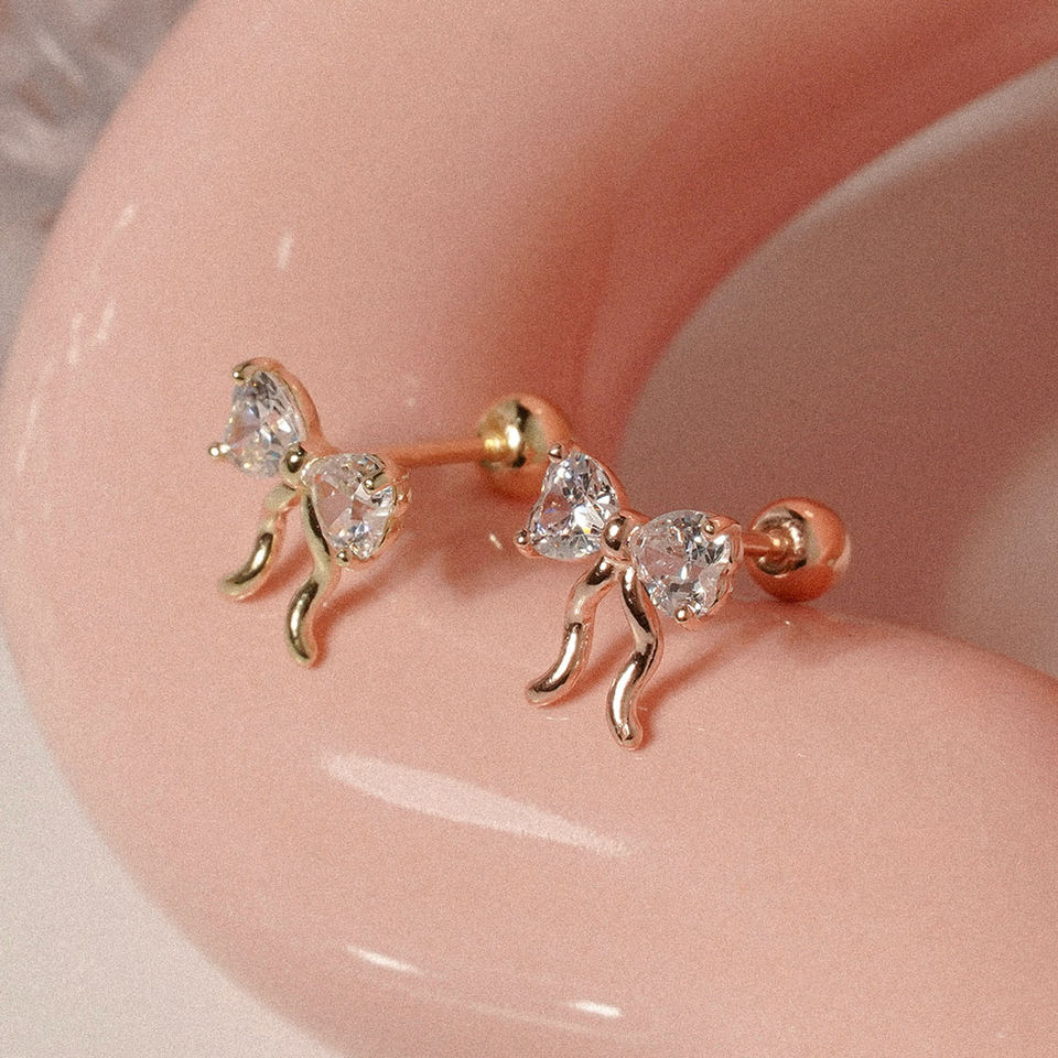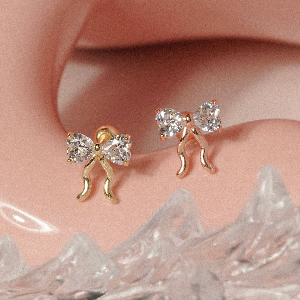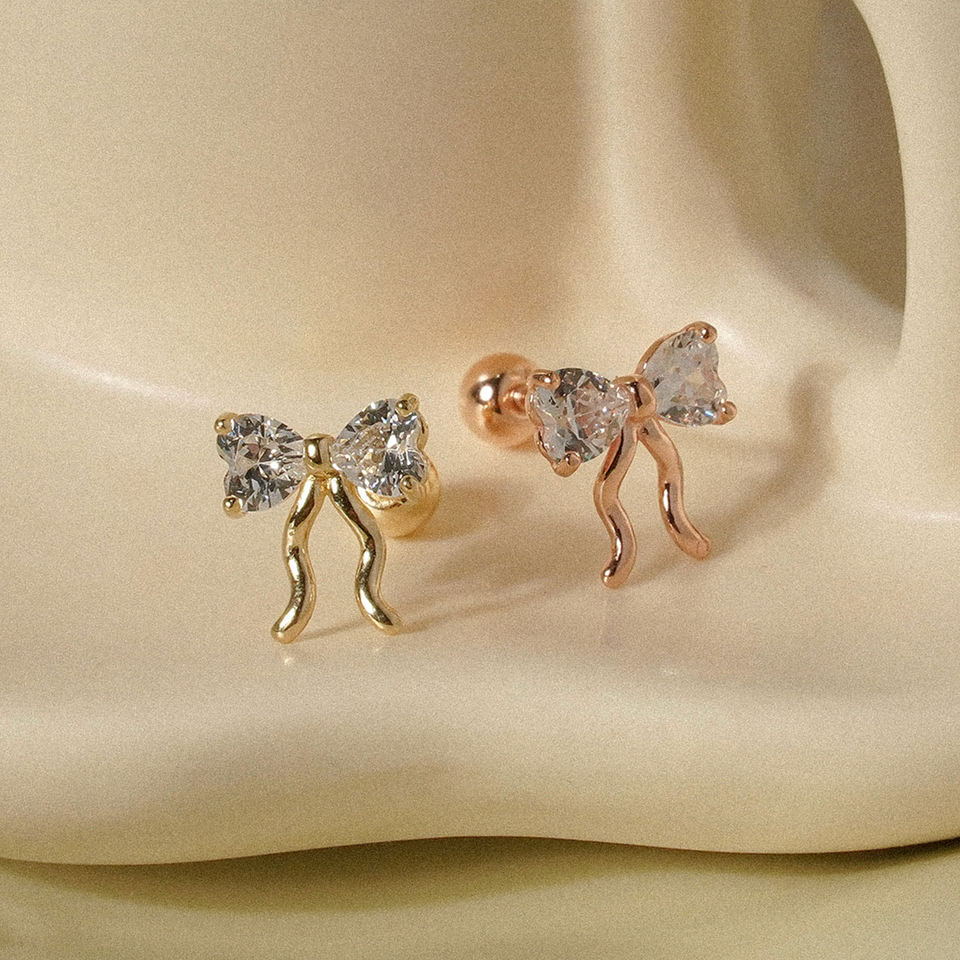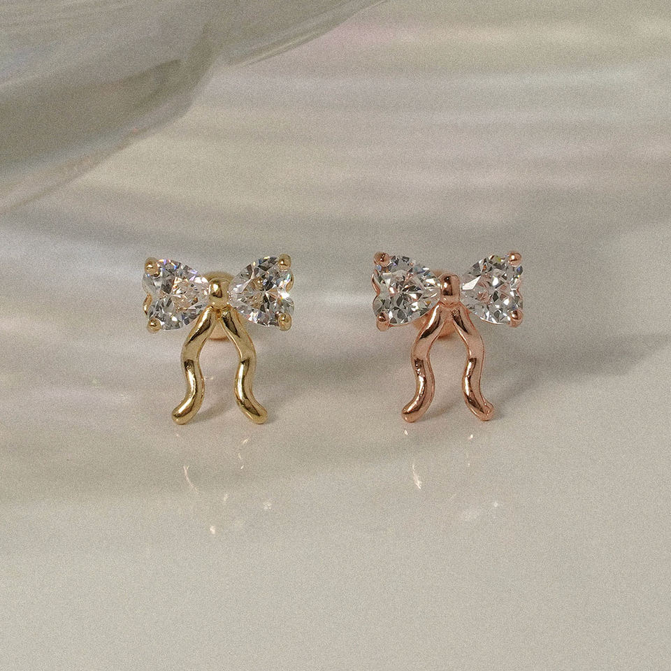 Women's Trendy Cute Wave Ribbon 14k Gold Zirconia Cubic Fine Stud Earrings K-Jewelry's Wholesale Piercing Jewelry Great