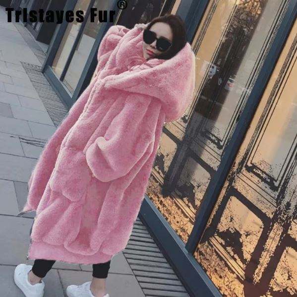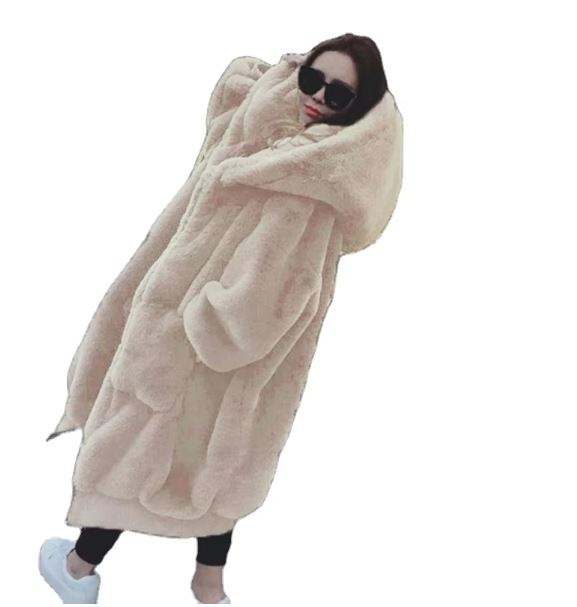 Women's Trendy Faux Fur Coat Oversize Winter Warm Long Coats with Hood Reversible Waterproof XL Size Rex Cloths