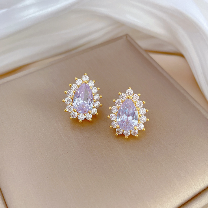 Women's Trendy Stainless Steel Zirconia Crystal Jewelry Set Full Diamond Drop Pendant Necklace Earrings Gold for Girl Friends