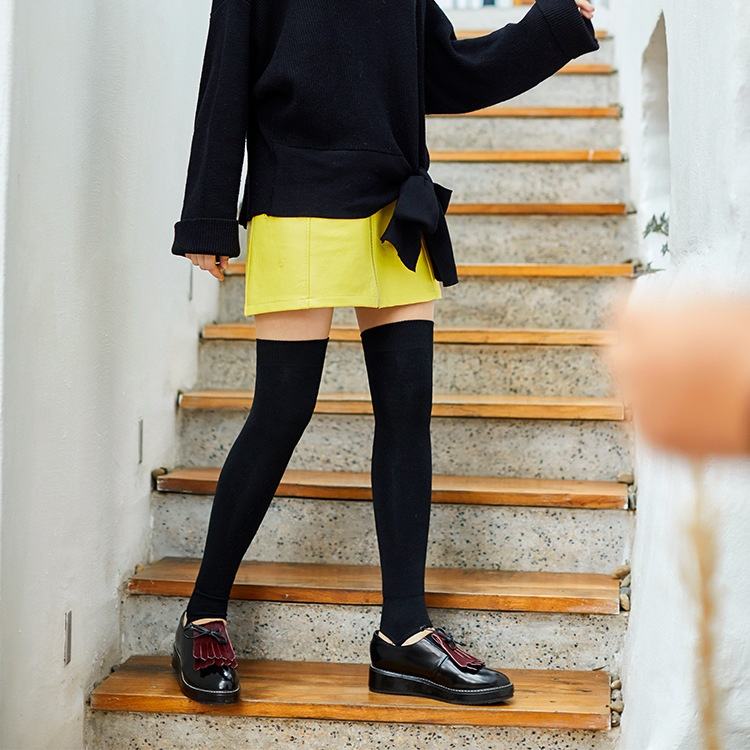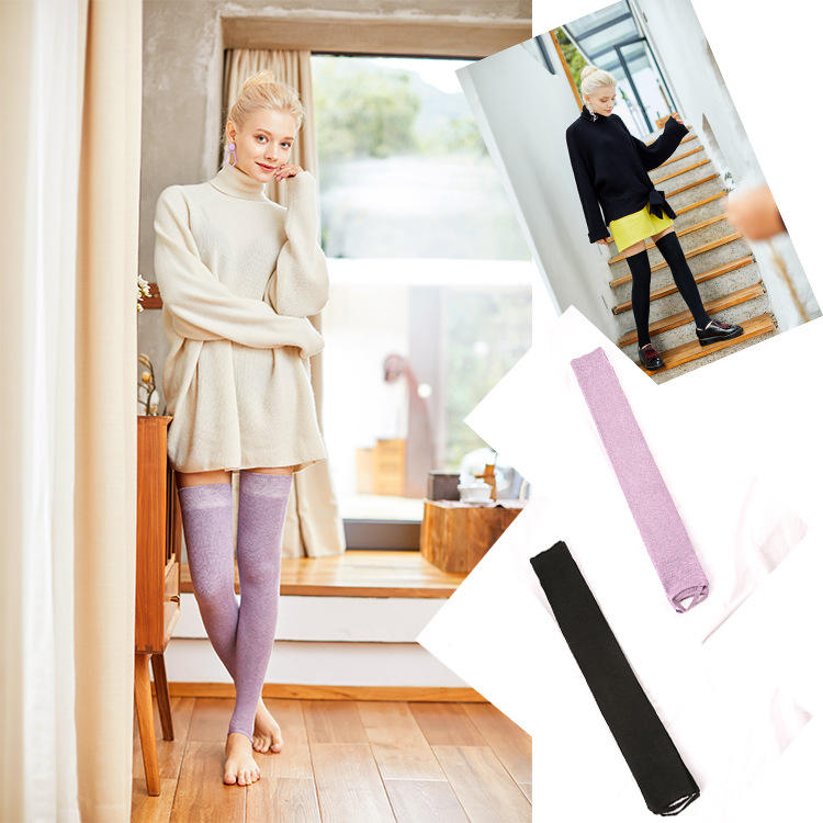 Calza sopra il ginocchio in cotone invernale alla moda da donna copre stile Casual dolce tubo lungo in maglia scaldamuscoli con Logo frontale tinta unita